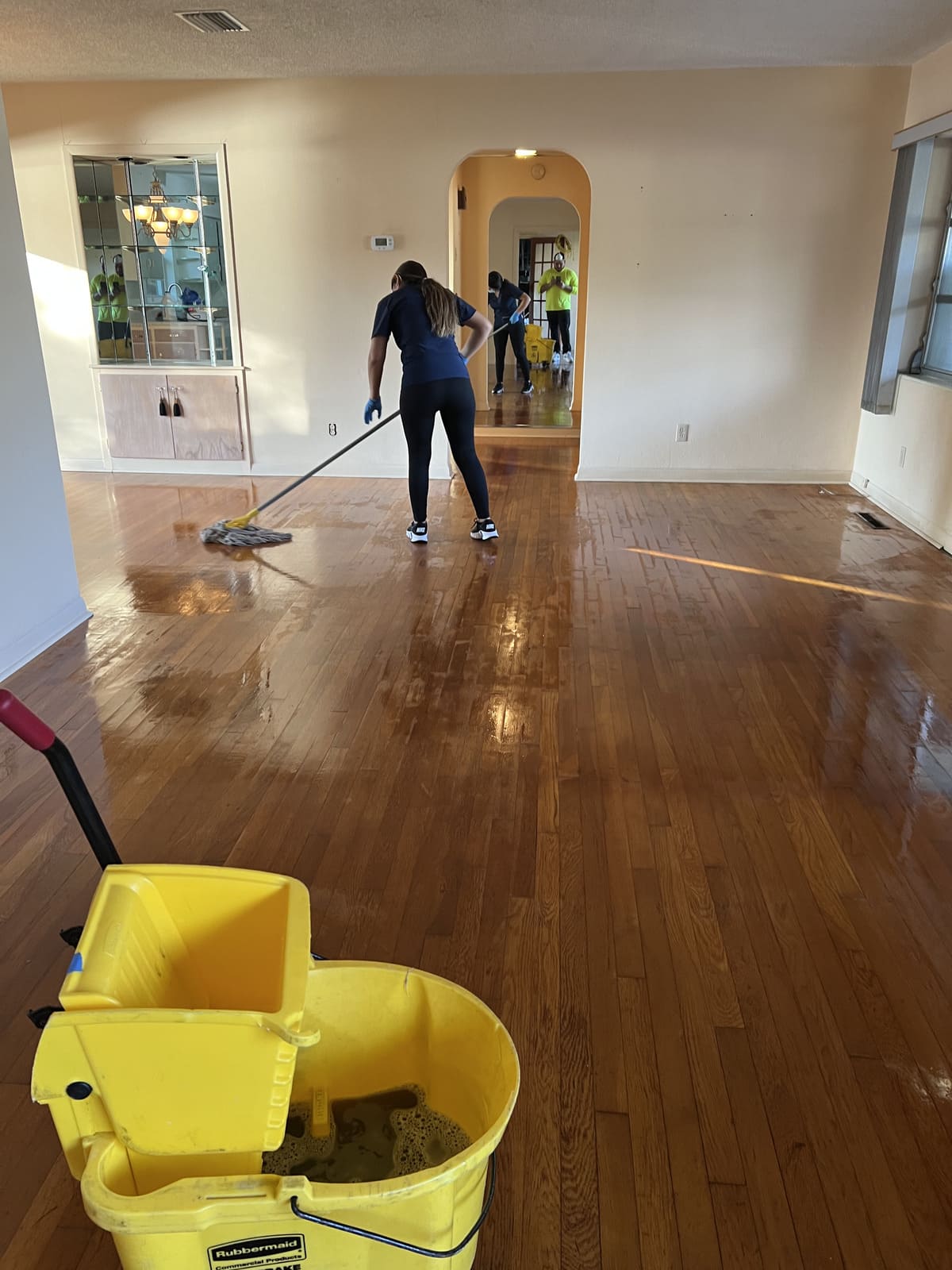 - Mopping and polishing hardwood or tile floors.